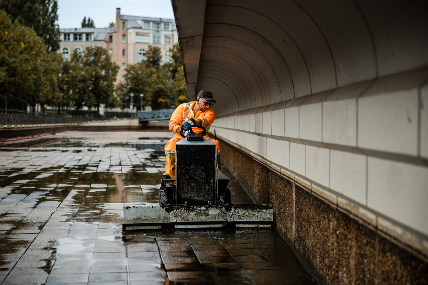 The Tegel harbour basin in Berlin’s Reinickendorf district unites the present with the past. Previously built as a site for handling cargo, this elongated basin is now a quiet stretch of water surrounded by modern homes and old quay walls, a place that has also become a popular recreational area. And there is a reason why the standards are so high here. Alongside the normal city cleaning measures, the harbour basin is also given a deep clean at regular intervals.